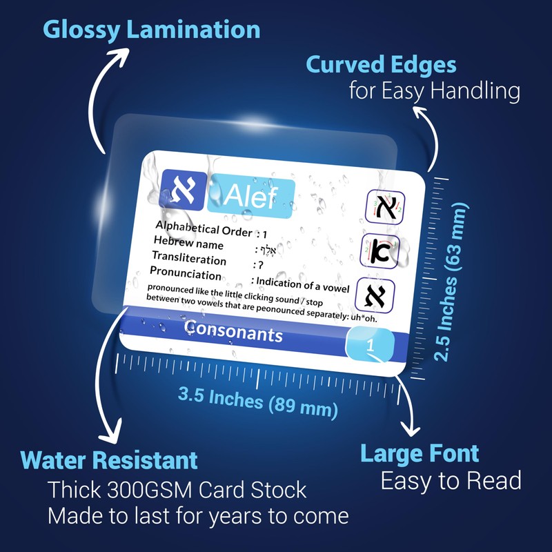 Through Hebrew flashcards, start learning Hebrew from the beginning. This pack includes the complete alphabet of Hebrew, including their English replacement, alphabetical order, and pronunciation guidance. Developed after extensive research and consultation with top-tier native speakers. Briston alphabet flashcards are a great step toward your excellence in Hebrew, covering all the aspects that are beneficial at a basic level.