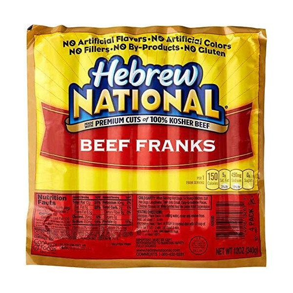 Hebrew National Beef Franks, 12 Oz - Pack of 4