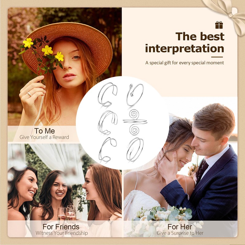 - MINIMALIST DESIGN Discover the Hebterrka upper bangle set with six unique designs, including layered and spiral upper bangles. These bracelets feature a classic yet stylish look that is perfect for any occasion. Whether in everyday life or on special occasions, these bracelets offer endless combination possibilities for your