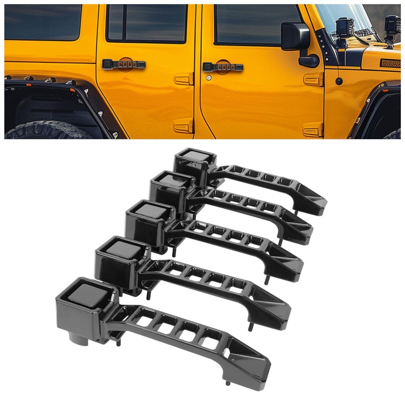HECASA Exterior Door Handle Tailgate Handle Compatible with 2007-2018 Jeep Wrangler JK/JKU Aluminum Powder Coated Heavy Duty Post-Modern Mechanical Style 5Pcs