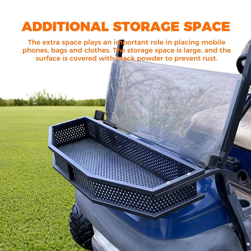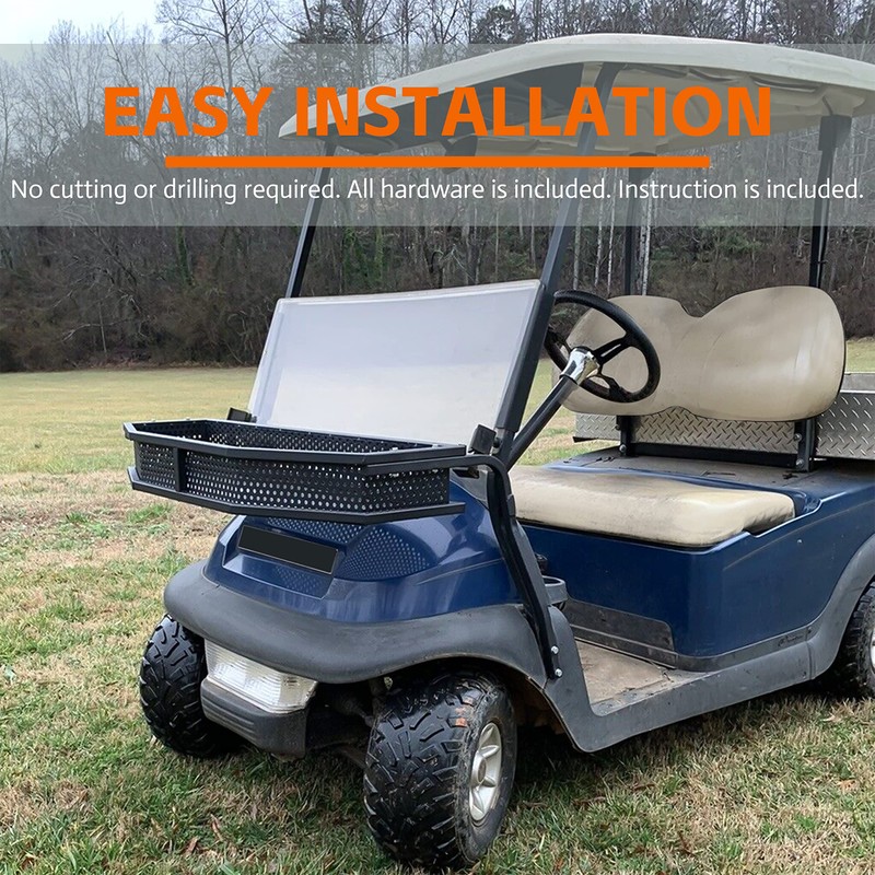 - Convenient Utility: With a front-loading utility cargo basket, you can easily transport tools, equipment or other essentials wherever your golf cart takes you. It provides plenty of room for safe storage and organization of items and is good for outdoor use.