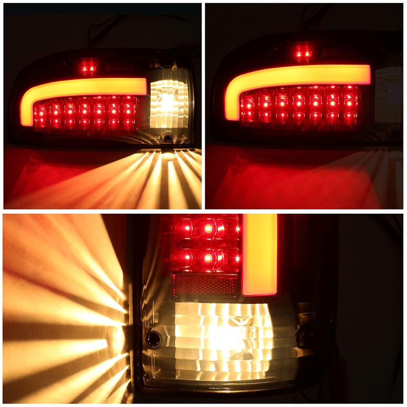 Outstanding Adaptability: C-Type LED Tail Lights Compatible with 1995-2000 Toyota Tacoma Base, DLX, SR5; Compatible with 1998-2000 Toyota Tacoma Limited, Pre Runner. Replacement for TO2800116, TO2801116, 8156004030, 8155004030. High Performance: The built-in LED tube bar is more eye-catching and dazzling. The tail lamps are made of high quality plastic with smoke lens, which can cope with all kinds of bad weather. Superior Visibility: Great LED light source for better brightness and visibility. Adequate illumination can bring you enough light in the dark night. Smoke lens and black housing design show off the vehicle's style and power. Package Included: You will receive 1 Pair x Tail Lights (with LED Tube Bar, Driver & Passenger Side). Package does not include instructions and mounting hardware. Professional installation is highly recommended. Safer Driving: Tail lights allow your car to be seen from a greater distance. At night or in bad weather, helping the driver behind you to know where you are. Greatly improve the reaction speed of the other driver.