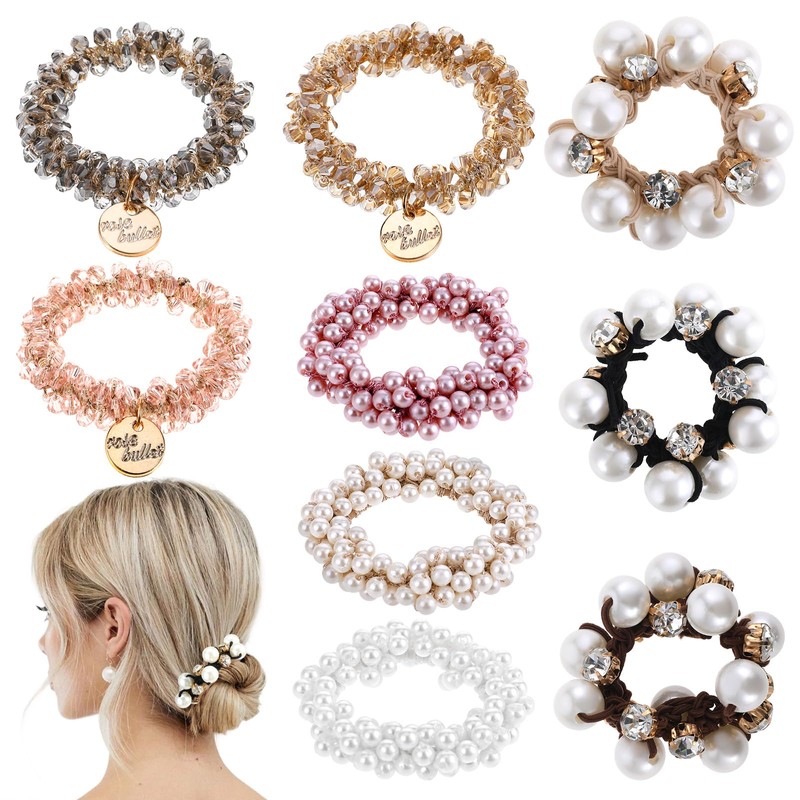 - 【Scrunchies Premium Durability】Designed with high-quality imitation pearls and sparkling crystals, these hair scrunchies are crafted to withstand daily wear without losing their luster. The durable elastic rubber bands resist fraying, ensuring the pearls and crystals remain securely in place. A perfect choice for those who seek long-lasting, stylish hair accessories that maintain their elegance through countless uses