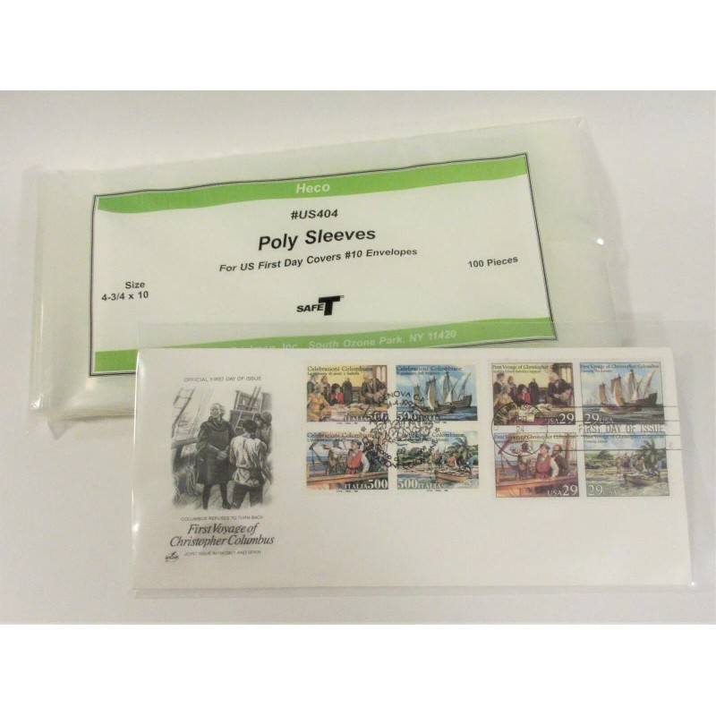 HECO 100 #10 BUSINESS ENVELOPE POLY SLEEVES, HECO #US404, HEAVY DUTY 3 MIL, 4-3/4x10