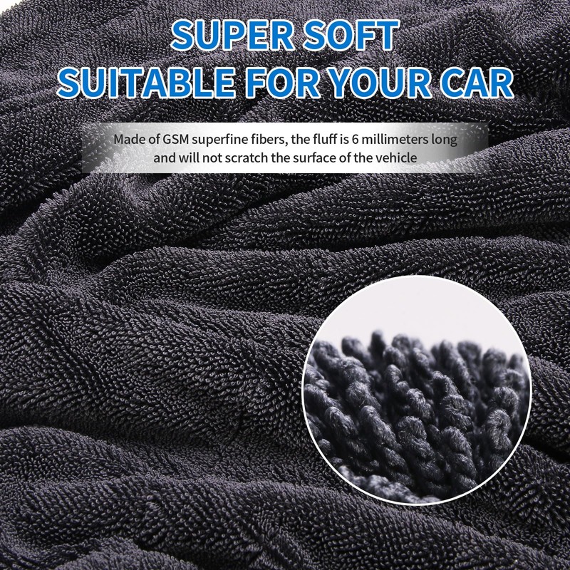 - Ultra-Absorbent, Streak-Free Drying – No More Water Spots! Our extra-large microfiber drying towels for cars feature advanced 1200+ GSM twisted-loop technology, for a perfectly streak-free, spotless finish. Whether you're drying your car after a wash, wiping windows, or polishing chrome, these car wash drying towels leave zero residue—just a flawless shine every time!