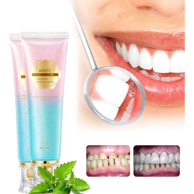 The toothpaste's effective stain-removal properties target discoloration from coffee, tea, wine, and other common sources.