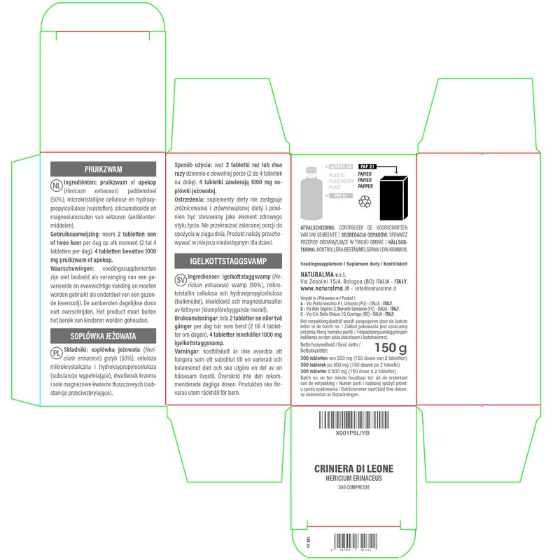 - Hedgehog beard or lion mane (Hericium erinaceus) mushroom 300 tablets of 500 mg (format 150 grams). Made in tablet form (not as a capsule or softgel). 1 tablet contains 300 mg hedgehog spiked beard or lion mane.