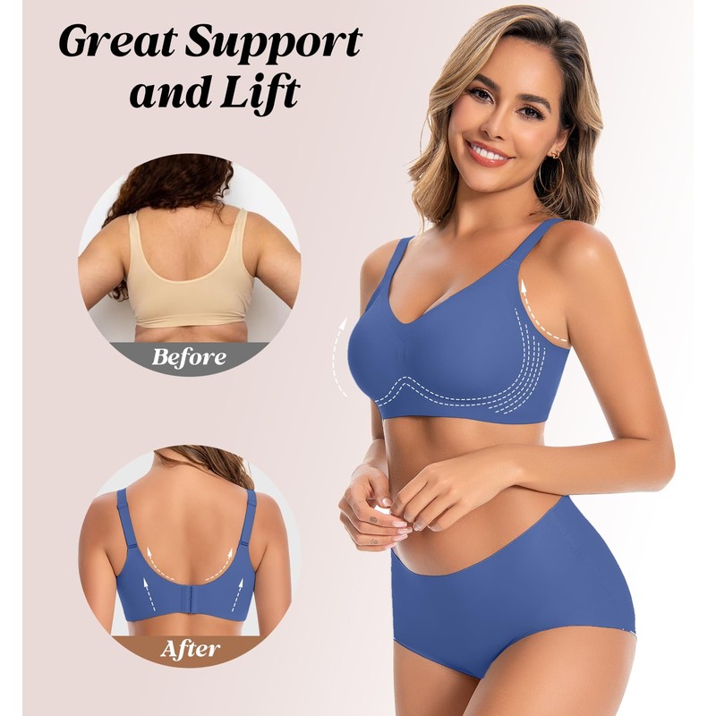 - Say goodbye to underwires: This bra has no underwires inside, it is a seamless bra without underwires, which will not cause the discomfort caused by traditional underwire bras. Women's support bra uses a "W" shaped "jelly bar" design to provide 360° support and lift for your breasts, shaping your natural and rounded body shape
