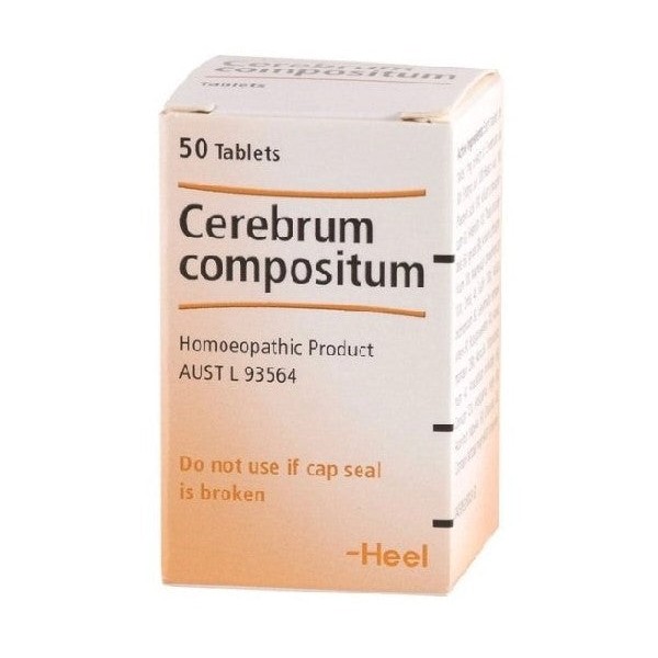 Acidum phosphoricum 10X, Aconitum napellus 6X, Aesculus hippocastanum 4X, Anacardium orientale 6X, Arnica montana 28X, Cerebrum suis 8X, China 4X, Cocculus 4X, Conium 12X, Embryo suis 10X, Gelsemium sempervirens 6X, Hepar suis 10X, Hyoscyamus niger 6X, Ignatia 8X, Kalium bichromicum 8X, Kalium phosphoricum 6X, Magnesium phosphoricum 10X, Placenta suis 10X, Ruta graveolens 4X, Selenium 10X, Sulfur 10X, Thuja occidentalis 6X. Contains lactose, magnesium stearate.