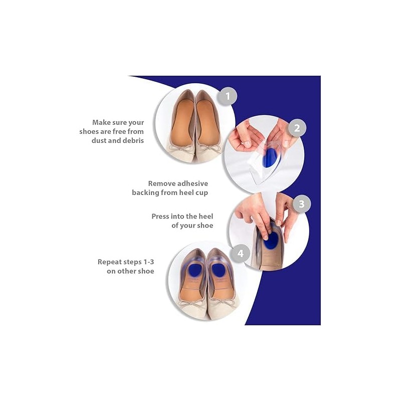 They are easy to insert into your shoes. Whether you're wearing casual shoes, sneakers, or work shoes, these heel cushion cups can fit snugly.