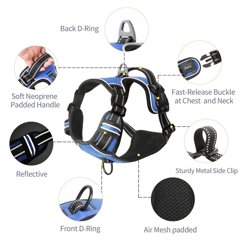 HEELE Dog Harness, No-Pull Dog Harness, Chest Harness for Medium Dogs, Soft, Breathable, Adjustable, Reflective Dog Harness, Anti-Pull with Padded Handle, Blue, XS