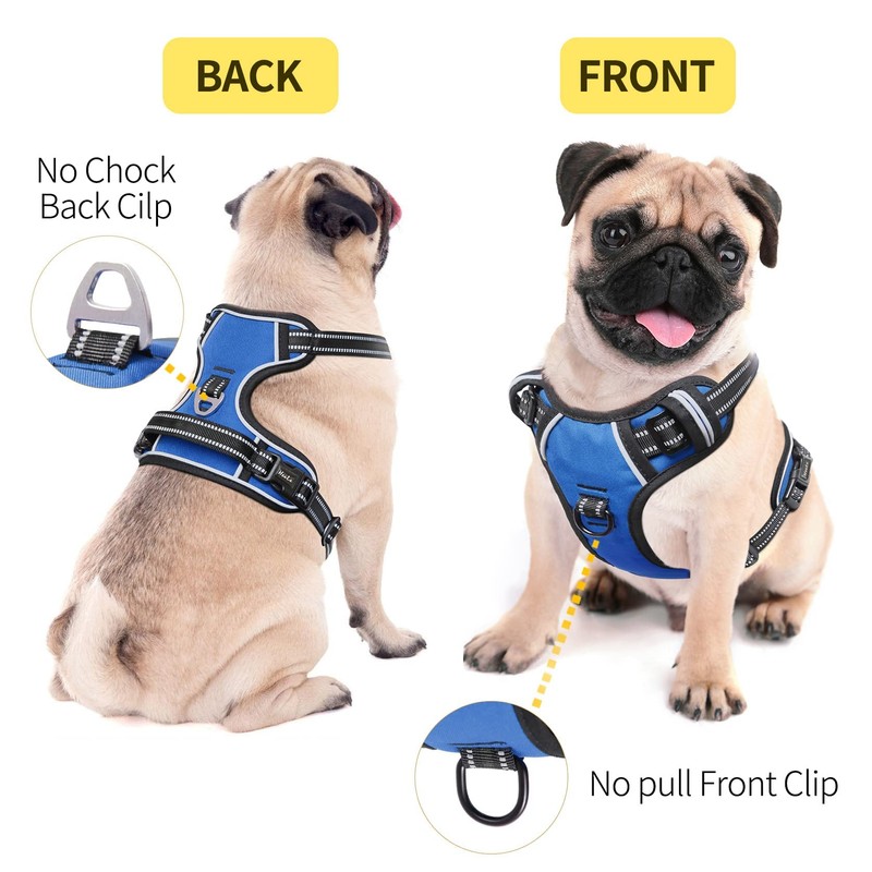 - No-pull and no-choke design - No strain on the dog's collar, pulling pressure is evenly distributed across the body to prevent pulling and choking. With 2 metal leash rings for safer dog walks. Use the chest ring to prevent your dog from pulling when walking, and the back ring is ideal for casual walks, etc.