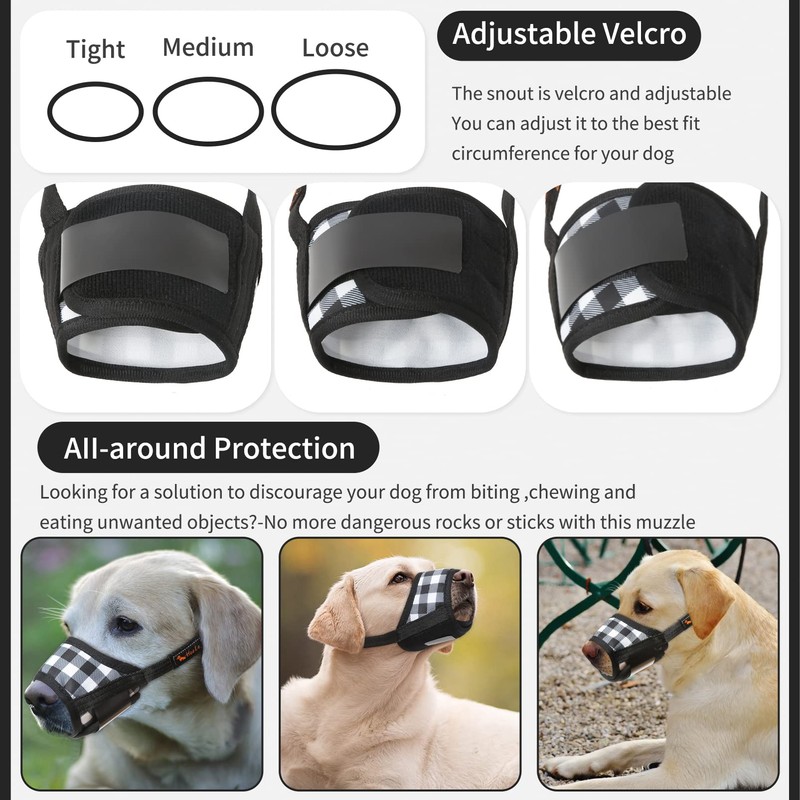 - Try this soft christmas small dog muzzle for him,could be comfortable while we were gone or for a work day, and he hasn’t been able to get the muzzle off, and he also hasn’t gotten into anything. Attention: picture shows measuring tip of dogs nose, so definitely measure the tip of the snout, not the widest part.