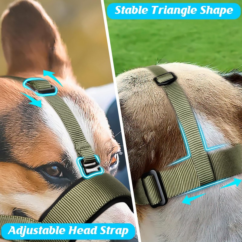 - Adjustable & Comfortable: Adjustable shoulder strap and a removable head strap for stability. Muzzle with a soft padded won't interfere with the dog's mouth or injure the skin.