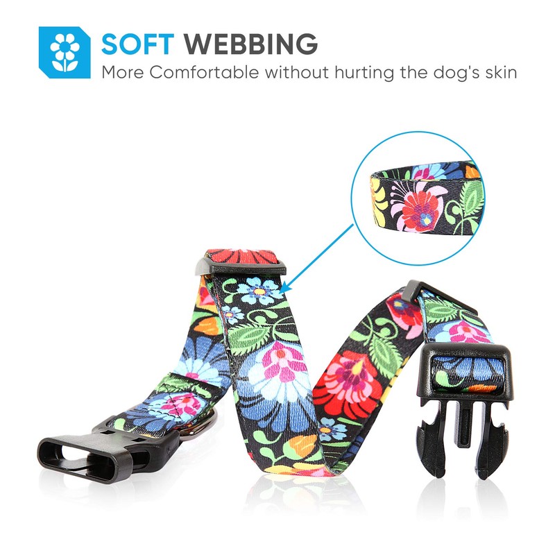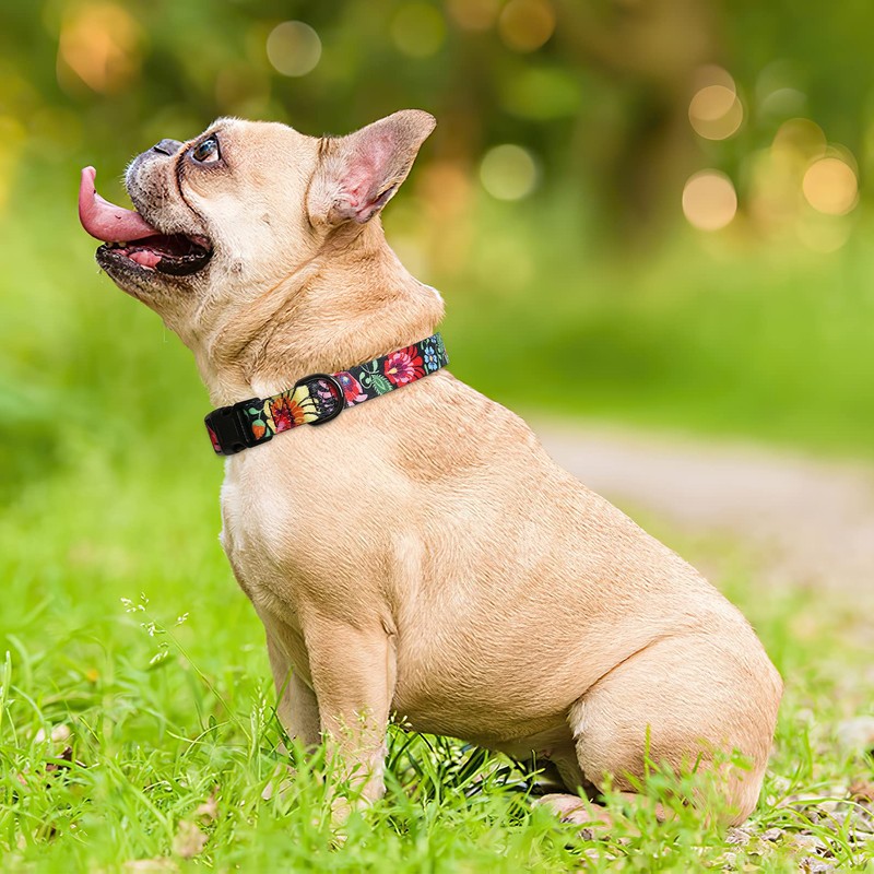 HEELE Hundehalsband, Hunde Halsband für Welpen Kleine Mittlere Große Hunde, Gemustertes Hundehalsbänder Verstellbares, Komfort, Robustem HundeHalsband, Wilde Blumen, M