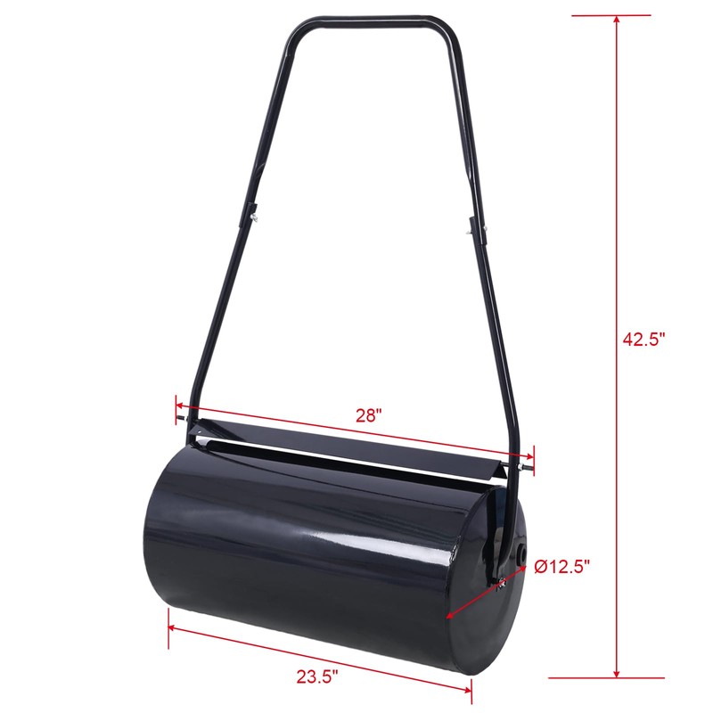 Heemab Achieve a Perfectly Flat Lawn with Push/Tow Behind Steel Lawn Roller, 13 Gallon Capacity for Garden Use, Black