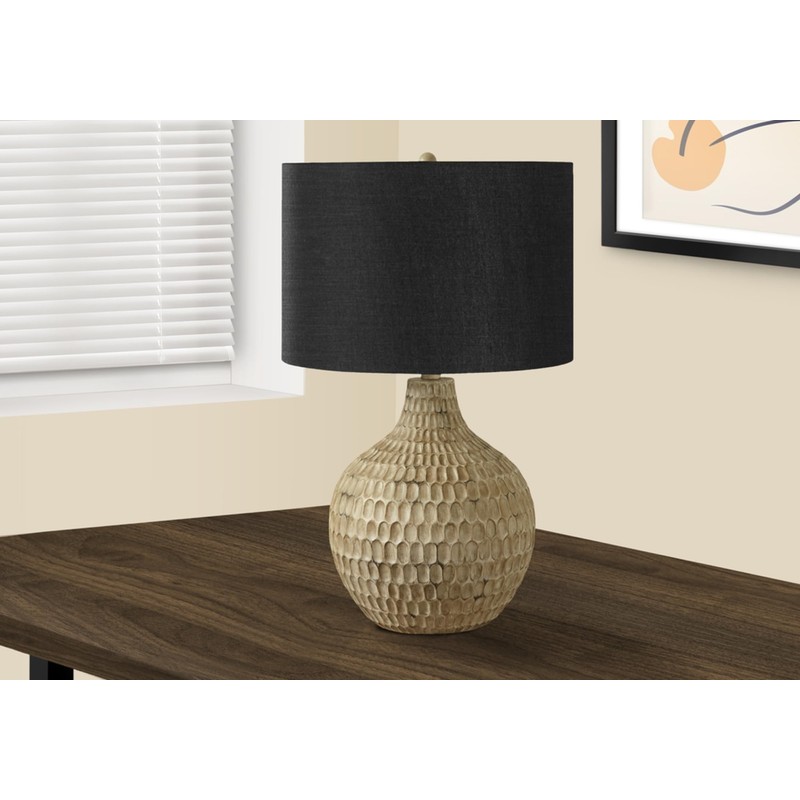 Every home deserves a touch of , and this contemporary table lamp is here to provide just that. Standing at 25 inches tall, its stylish design combines a textured gourd-shaped brown resin base with a classic black linen drum shade, creating a focal point in your living room, bedroom, or home office. Imagine walking into a room with the perfect lighting, where warmth and tranquility embrace you.