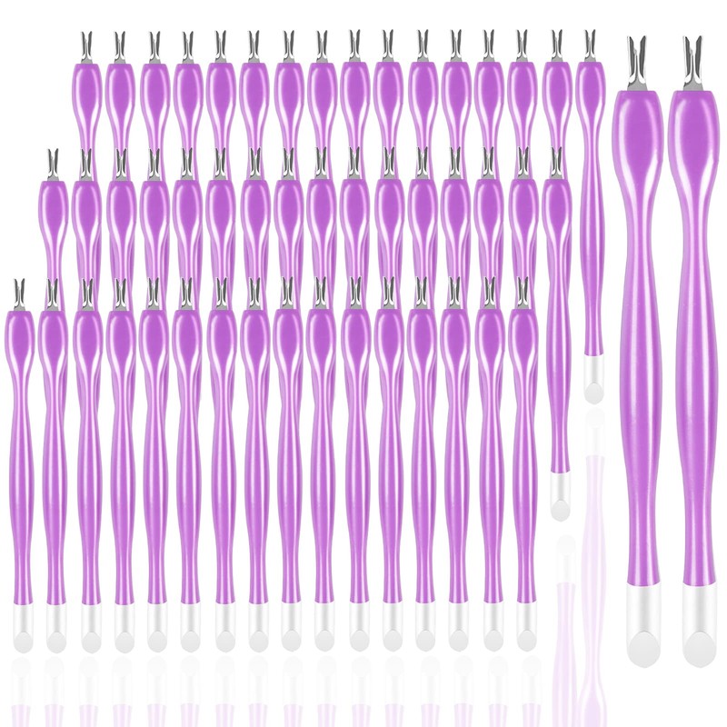 heemeei 50Pcs Nail Cuticle Trimmer Rubber Nail Cleaner, Plastic Handle Cuticle Knife, Double End Nail Dead Skin Fork Cuticle Pusher Bulk Nail Art Cuticle Remover Tools for Girls Women and Men-Purple…