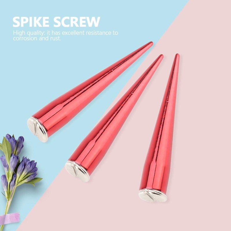 HEEPDD 10 Pcs 7mm Metal Spike Rivets, Cone Spikes Metallic Screw Back Studs Cool Rivets Punk for DIY Leather Crafts(Red)