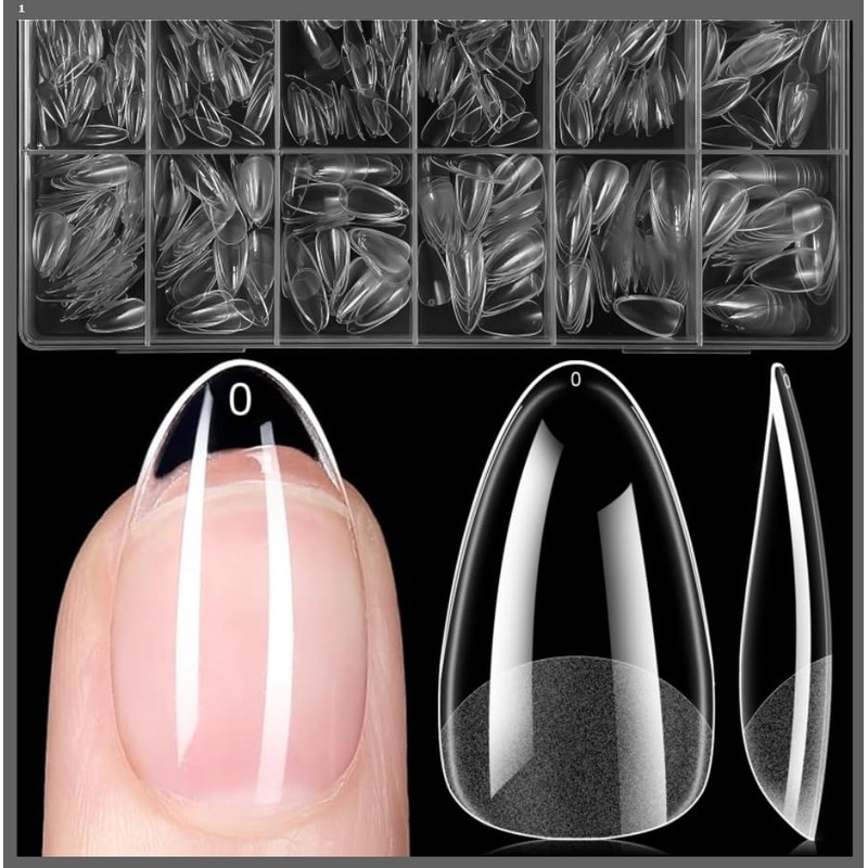 Heercun Nail Tips Short Almond Full Cover Soft Gel Tips Short Nail Tips 600 Pieces