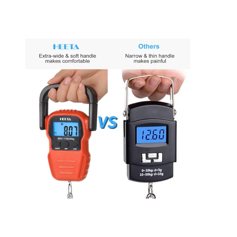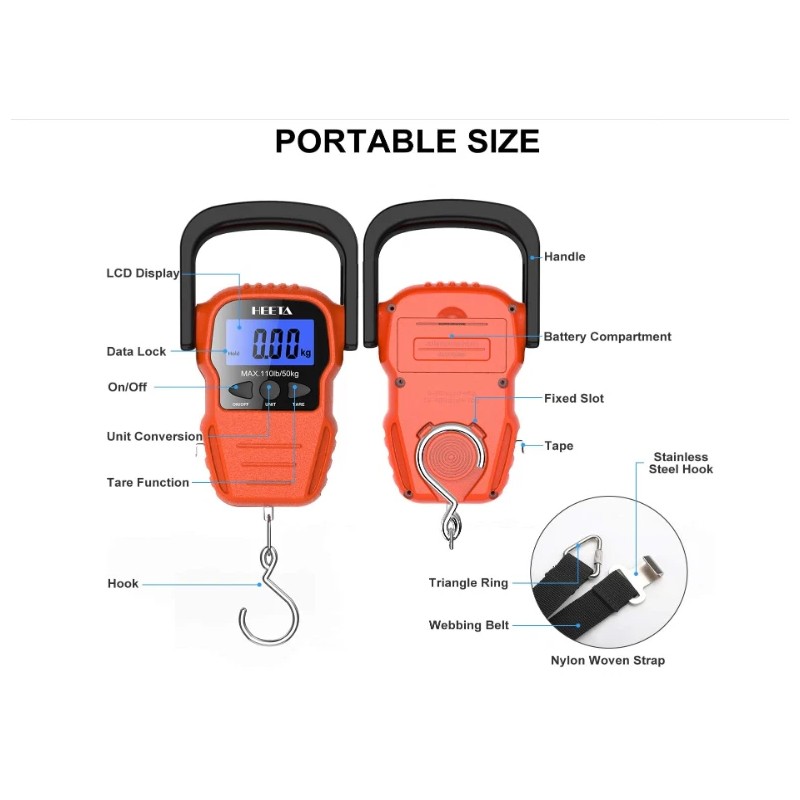 HEETA Fish Scale with Backlit LCD Display, Up to 110lb/50kg Digital Portable ...