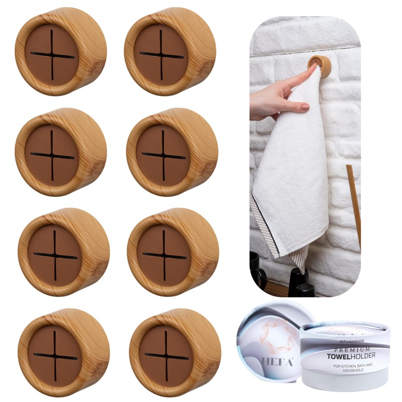 HEFA Eco 8 Pack Towel Hooks - Kitchen Organization, Hand & Dish Towel Holder