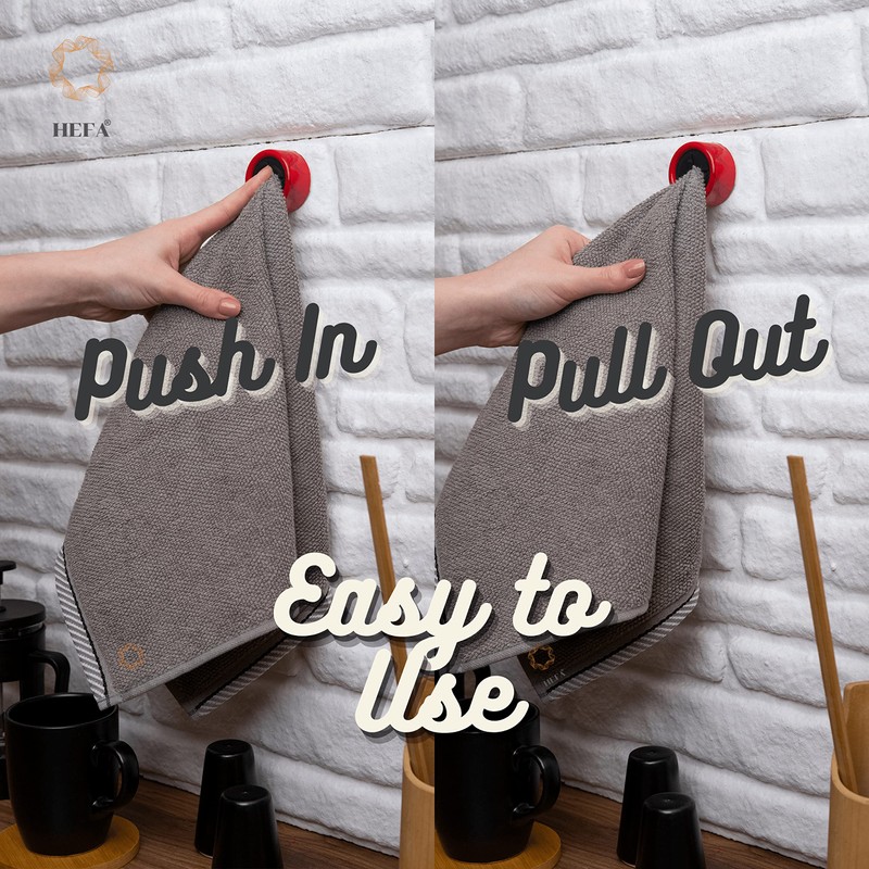 - Effortless Organization - Our practical towel hooks are versatile and easy to use. Hang hand towels, dishcloths, gloves, aprons, and more in your kitchen or bathroom. The silicone grips use a physical buckle principle to hold towels tightly without causing damage. Simply push and release to add or remove your towel.