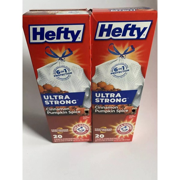 Hefty 2 HEFTY ULTRA STRONG TALL KITCHEN TRASH BAGS 20 COUNT CINNAMON PUMPKI...