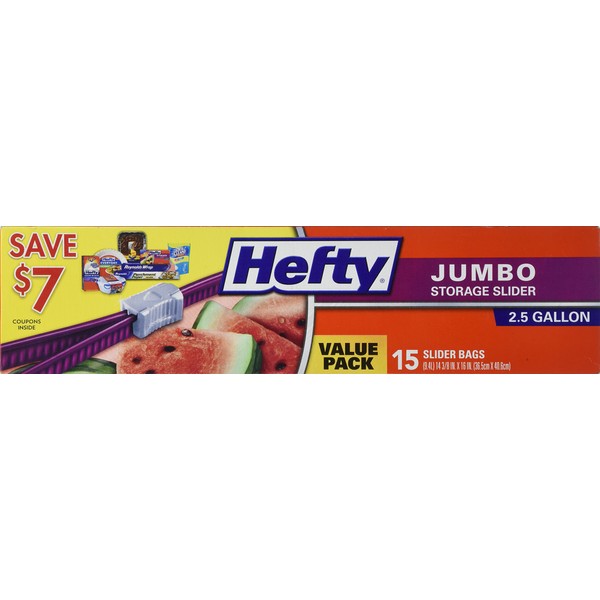 Hefty 2x Stronger 2.5 Gallon Jumbo Storage Bags, 15 Count (Pack of 2) Total 30 Bags