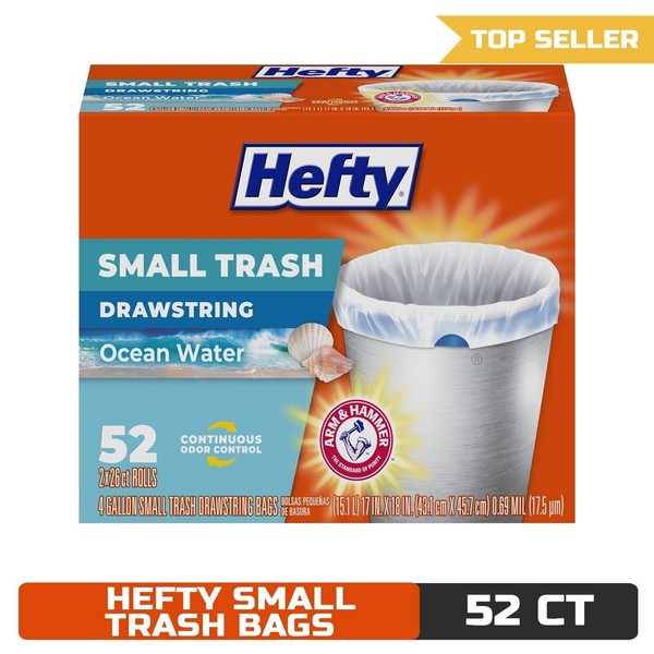 With 52 bags in each pack, you can count on Hefty Small Trash Bags to handle all of life's little messes. Plus, all Hefty garbage bags come with a 100% satisfaction guarantee, so you can trust in their performance.