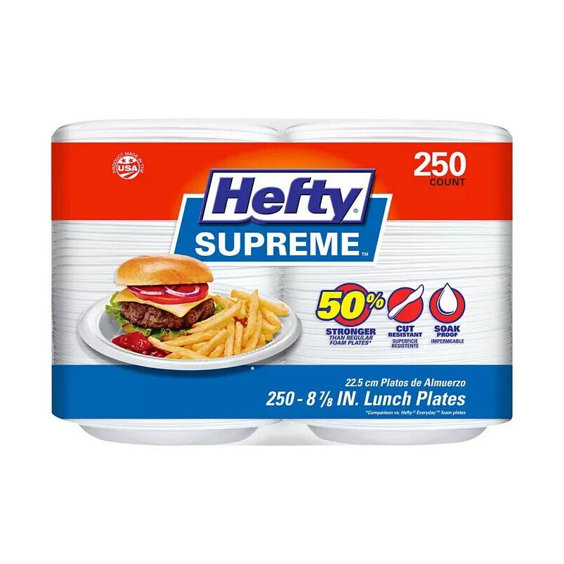 Hefty Supreme Foam Disposable Lunch Plates, 8 7/8", 250 ct.