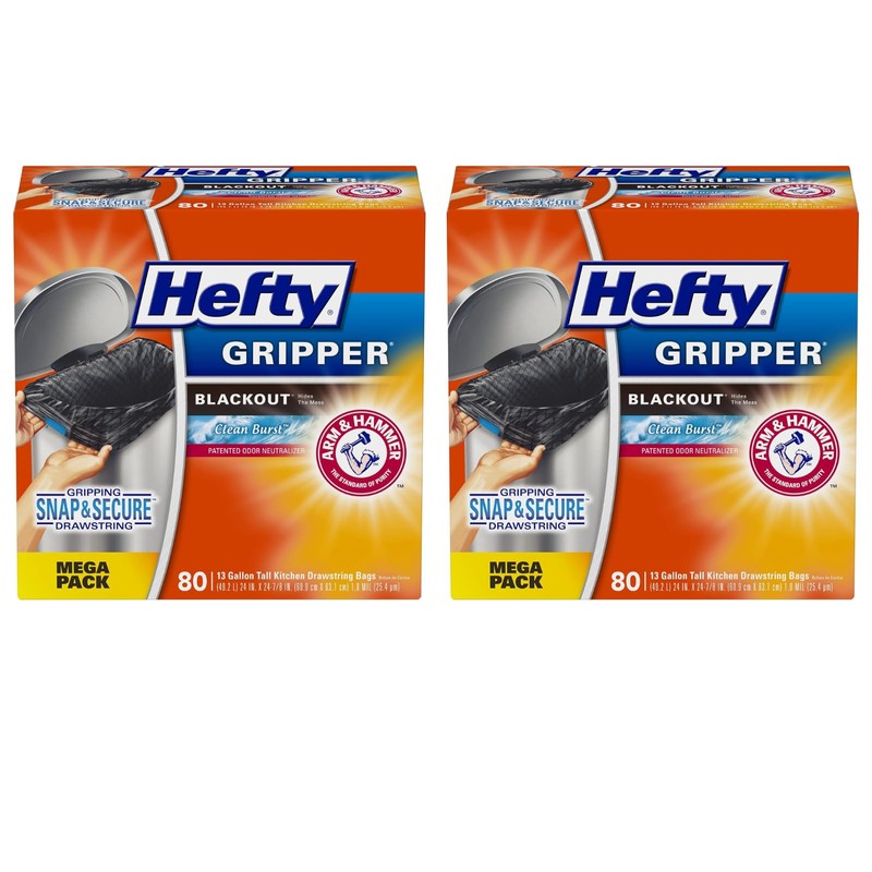 Hefty Ultra Strong Blackout Trash Bags (Clean Burst, Tall Kitchen Drawstring, 13 Gallon, 80 Count) (2 Pack(80 Count))