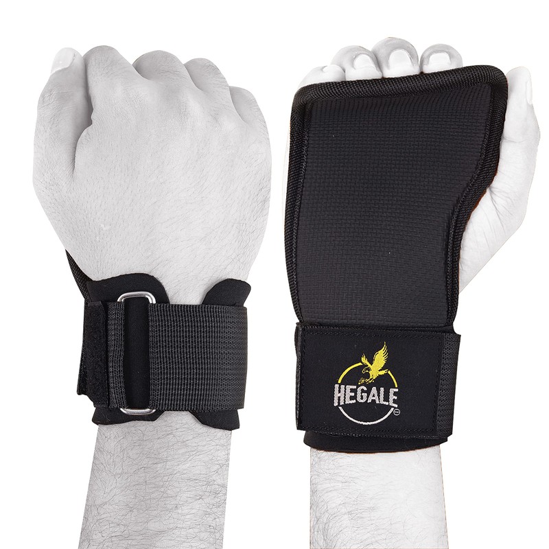 Hegale Weight Lifting Grip Straps with Neoprene Wrist Supports and Protective Palm Grip | 3-in-1 Gym Gloves and Weight Lifting Straps | Black Lifting Straps for Powerlifting and Weightlifting