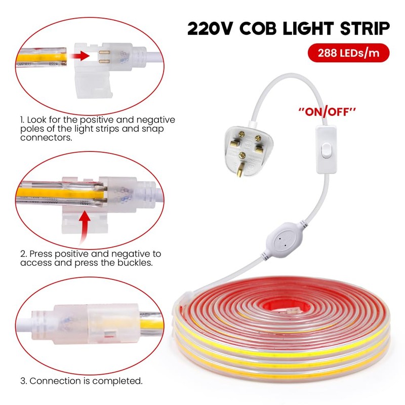 HEGEHE 220V COB Strip Light with Self-Adhsive Tape, Cut to 50cm, IP65 Waterpr...