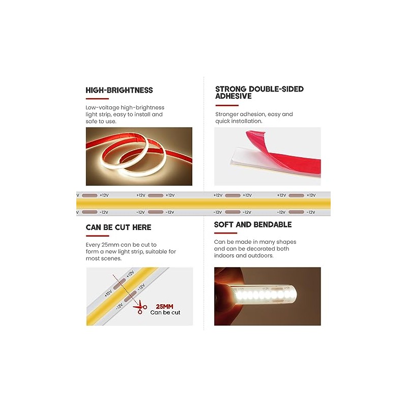 - ?Geeignet fr alle Dekorationen: Die COB LED Streifen sorgt fr Innenbeleuchtung und Deko in Kche, unter Schrank, Esszimmer, Schlafzimmer, Party, Hochzeit usw.