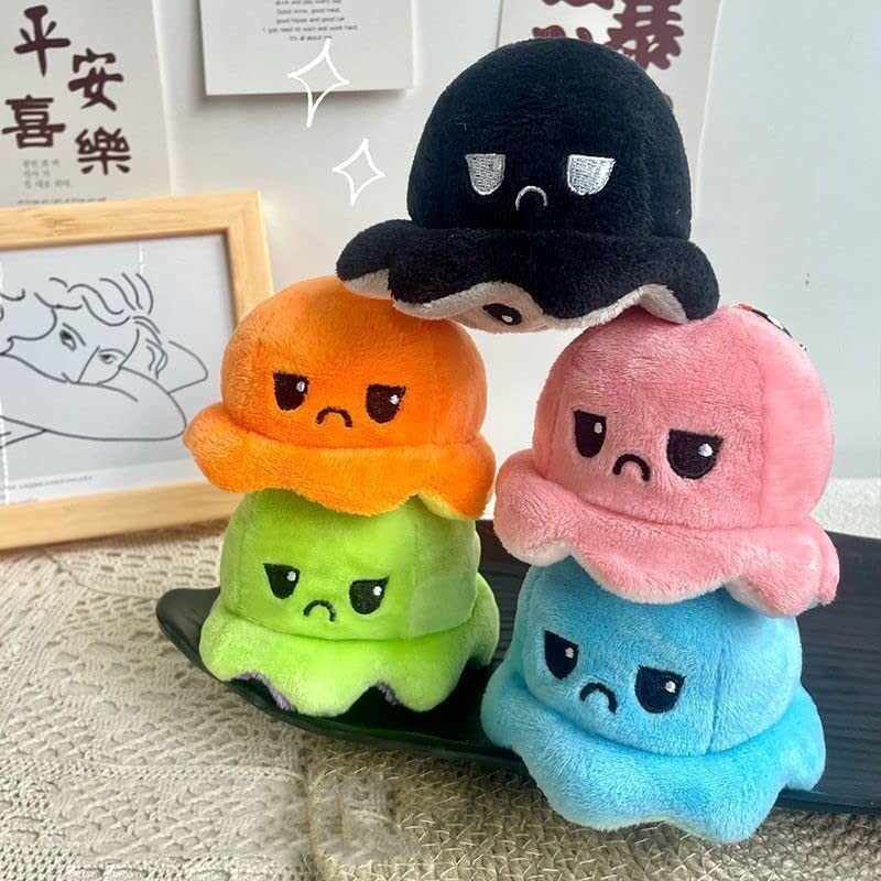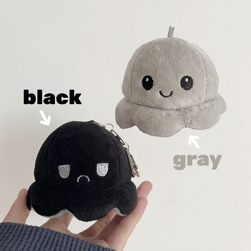 HEHWH Octopus Keychain Key Ring Bag Charm Reversible Octopus Doll Inside Out Octopus Plush Double Sided Flip Doll Fluffy Toy Angry Face Laughing Face Funny Present Gift (black)
