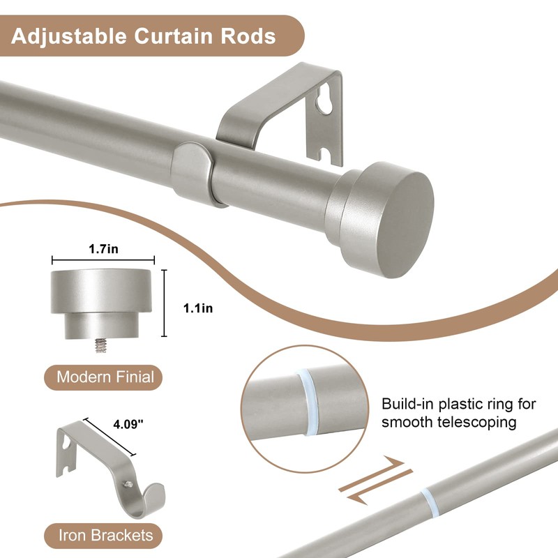 - 👍 2 Pack Easy to Install Curtain Rods: Hei! Dear modern telescoping drapery rods shipping package have detailed installation instructions inside,follow the steps, antique silver curtain rods can easily complete the installation.