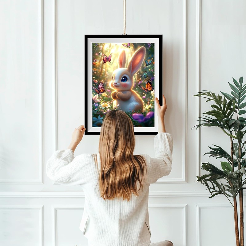 HEIBAGO 5D Easter Bunny Diamond Art Painting Kits for Audlts, Full Drill Animal Diamond Painting for Beginners Rhinestone Embroidery Diamond Dots Set Butterfly Gem Art Crafts for Home Decor 30x40cm