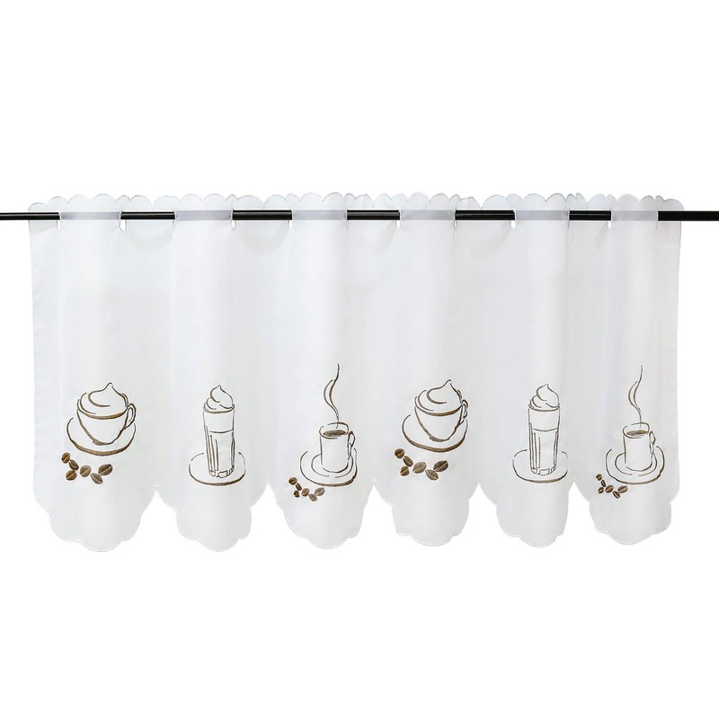 HeichkelL Besseit Voile Coffee Motif Window Curtain Kitchen Short Curtain Transparent Bistro Curtain White H x W 30 x 90 cm