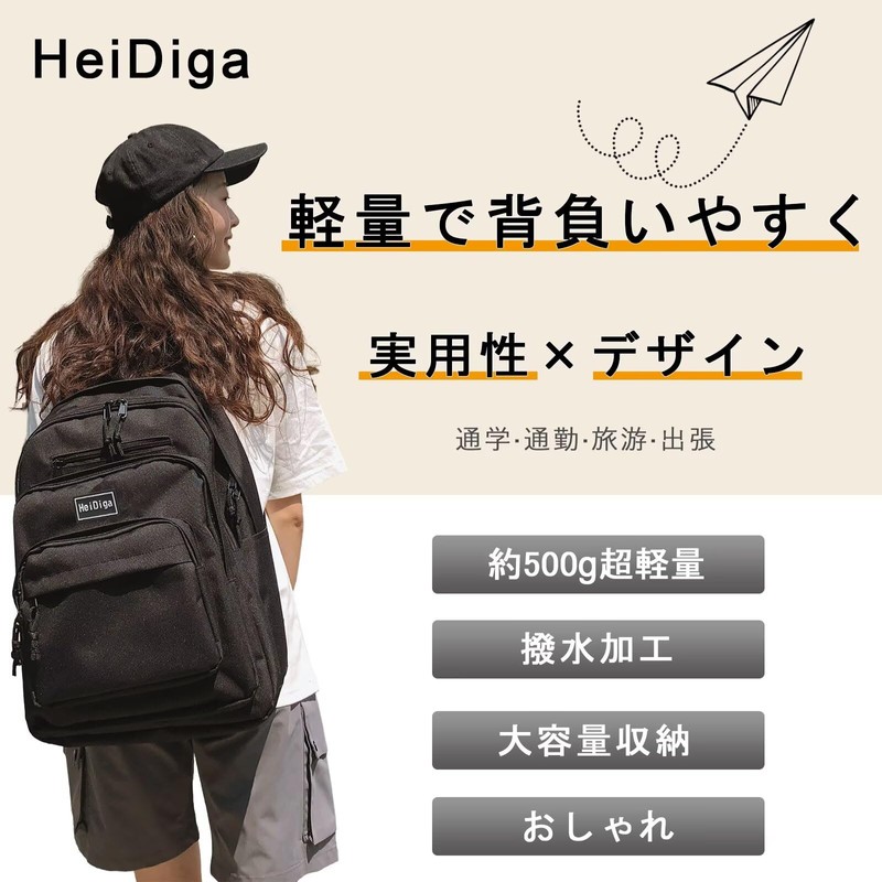HeiDiga Women's Backpack, Large Capacity, Lightweight, School, Waterproof, Rucksack, 15.6 Inches, PC Storage, Compatible with A4, Multiple Pockets, Multifunctional, Anti-Theft, Backpack, 2-Way, High