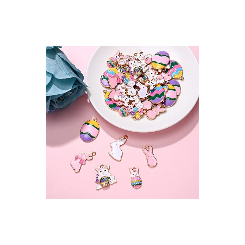 - VARIOUS EASTER CHARMS:Colorful easter egg/rabbits pendant charms craft set suitable for bunny dangle earrings,charm bracelet,necklace,key ring,sweater chain decorative accessories etc.Perfect choice for DIY making in Easter party decoration.