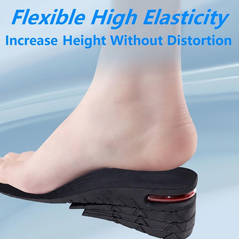- Height adjustable: the insole to increase the height is adjustable from 3 cm to 7.5 cm with air cushion, you can also use different heights according to your preferences and needs, increase the length of the leg or correct the difference in the length of the left and right leg. Best of all, these heels remain invisible, so no one knows the secret to your increased height. It will increase your self-confidence invisible!