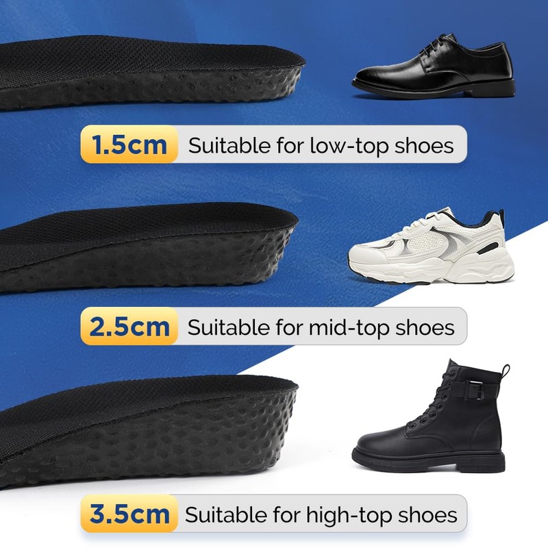 - INVISIBLE THREE HEIGHTS The insole is designed invisible. No one will know the secret of your elevated height. The three available heights are perfect for different occasions, such as Meetings, dates, weddings, shopping or any event with lurking cameras.