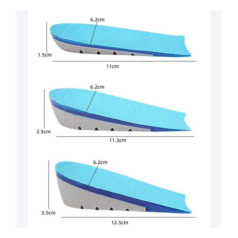 - THREE HEIGHTS AVAILABLE: This height increase half insoles are Invisible design, no one will know you're wearing them. According to your shoes and the height you need, Select 1.5cm, 2.5cm, or 3.5cm height for the most comfortable fit.