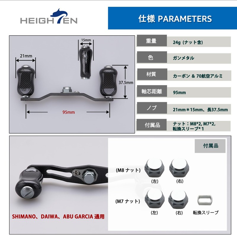 HEIGHTEN 757 Gourd Series 3.7 inches (95 mm) Reel Handle 0.8 inch (21 mm) Knob Equipped with 1.5K Carbon, Shimano Daiwa Abu General Purpose Bait Reel