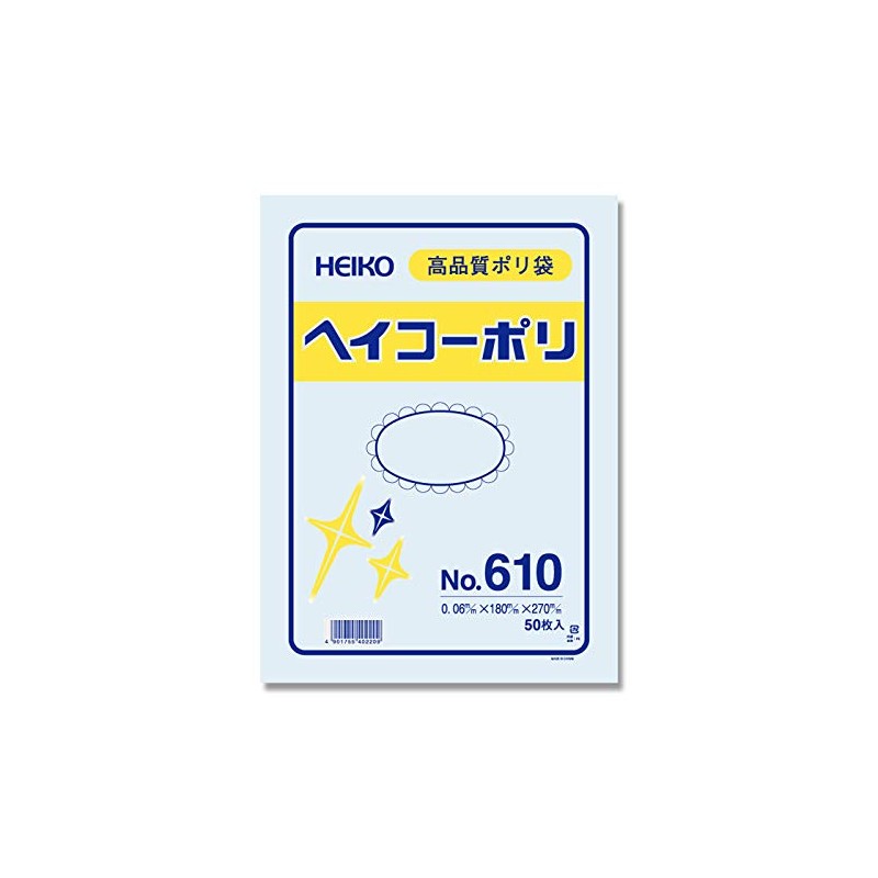 HEIKO 006620000 Poly Standard Bags, No. 610, No String, Pack of 50