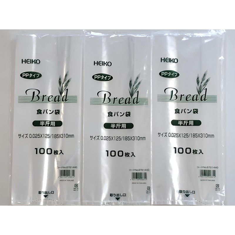 HEIKO 006721440 PP Bread Bags, For Half Loafs, 300 Sheets (100 Sheets x 3 Bundles)