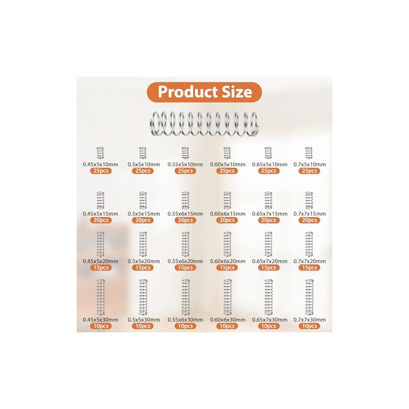 - Easy Storage: The 420 pcs compression spring set is neatly packed in a transparent storage box with clear size labelling, making it easy for you to quickly choose the size you need and place it, more convenient to use.