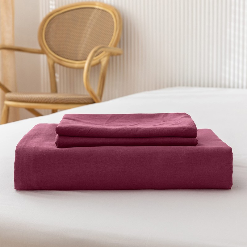 HEIMENAOGO 600 Tc Egyptian Cotton Duvet Cover Queen Size Ultra Soft and Breathable Bedding Set with Zipper Closure Long Staple Washed Cotton Duvet Cover Linen Like Texture Burgundy (Heather Rose) 3Pcs