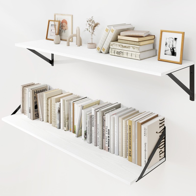 Heimlove White Deep Floating Shelves for Wall, 36W x 8D Wood Wall Shelves Set of 2, Wide Floating Bookshelf for Living Room, Kitchen, Office, Bedroom and Decor Storage, with Black Bracket - White